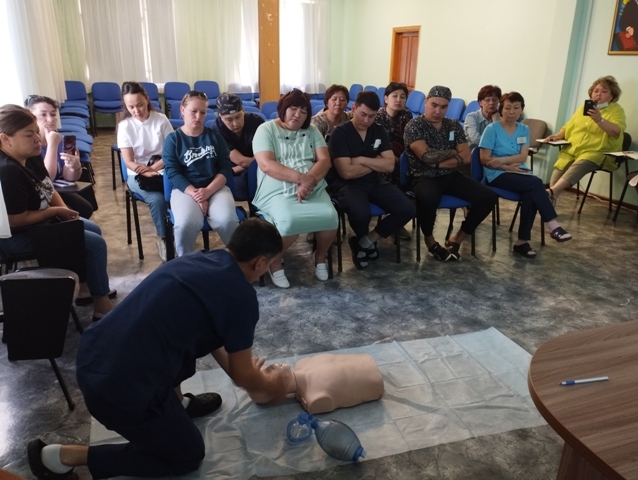 В рамках обучения были продемонстрированы основные мероприятия, направленные на восстановление жизнедеятельности организма и выведение его из состояния клинической смерти. Следует отметить, что Фатих Байдарканович наряду с основополагающей теоретической информацией предоставил аудитории ценные практические советы (с использованием учебного манекена) по проведению эффективной сердечно-легочной реанимации.